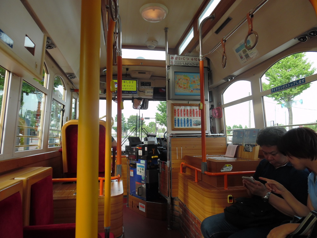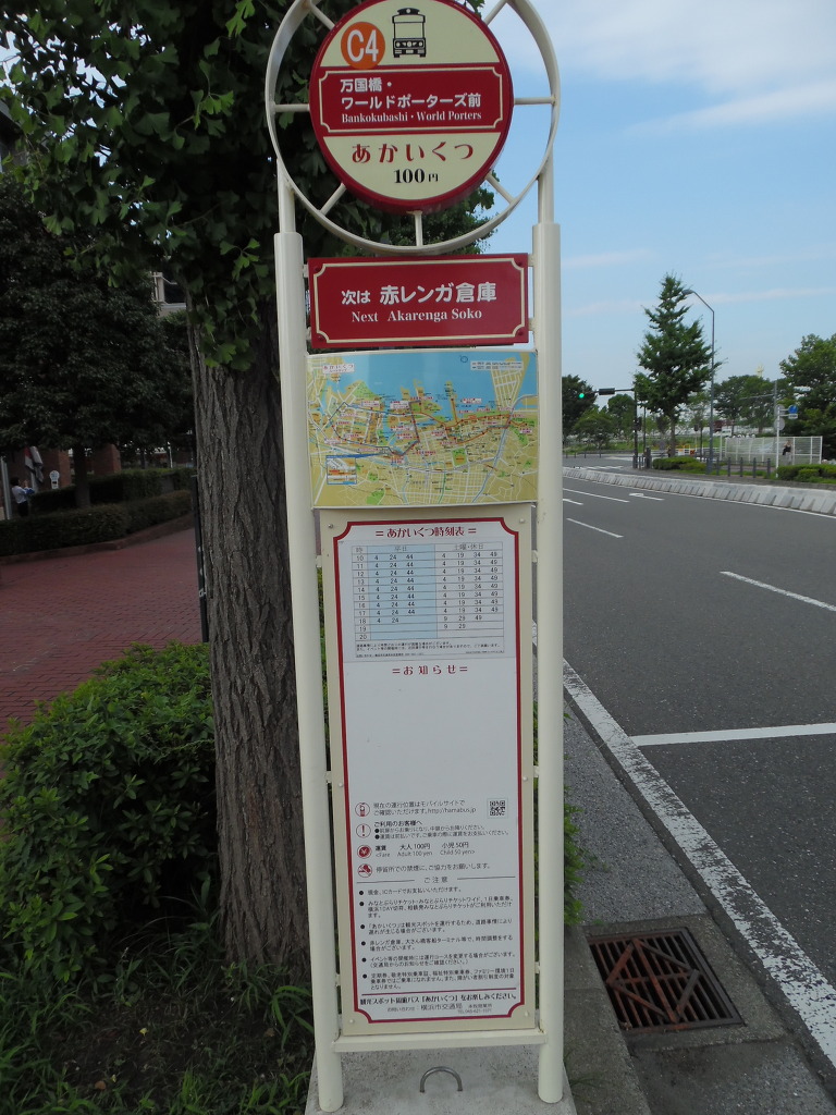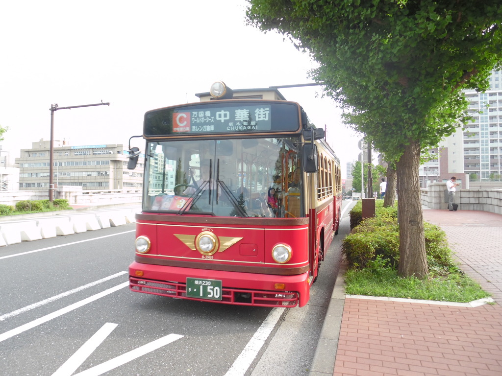 요코하마의 관광명소를 이곳저곳 찔러주는 버스 '아카이쿠즈'입니다.