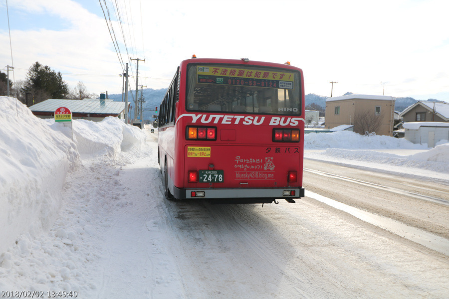 유바리시의 한창 전성기였을때 상업의 중심지였던 시미즈사와역을 가기 위해 이 버스를 탔습니다...