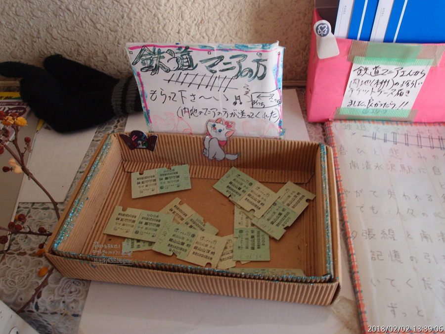 [사진 271] 매표소 옆에는 철도 팬들을 위해 옛날에 운행했던 걸로 추정되는 유바리시 의 로프웨이 애드몬슨 권을 나눠주고 있습니다..