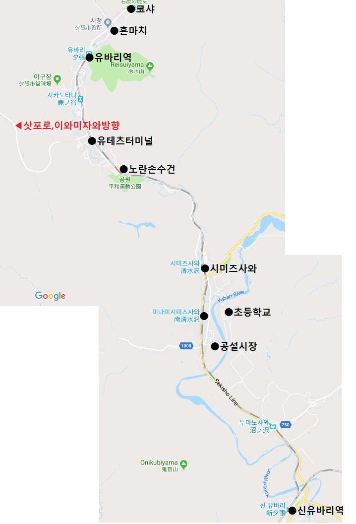 이전편에서도 말씀드렸지만, 이 노선은 코샤-유바리역-시미즈사와역>초등학교>공설시장>미나미시미즈사와역>시미즈사와역-유바리역-코샤 로 운행하는 6자 형태의 노선인데요..