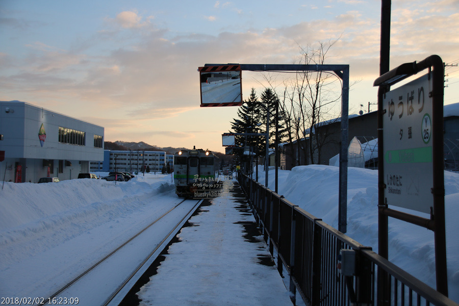 [사진 329] 16시23분.. 제가 탔던 유바리지선 [다음 열차] 가 들어왔습니다..