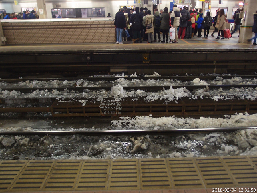 근데, 삿포로역 홈은 지붕이 있던걸로 기억하는데, 녹은 눈들이 남아있네요.. 열차 들어와서 털어낸건지...