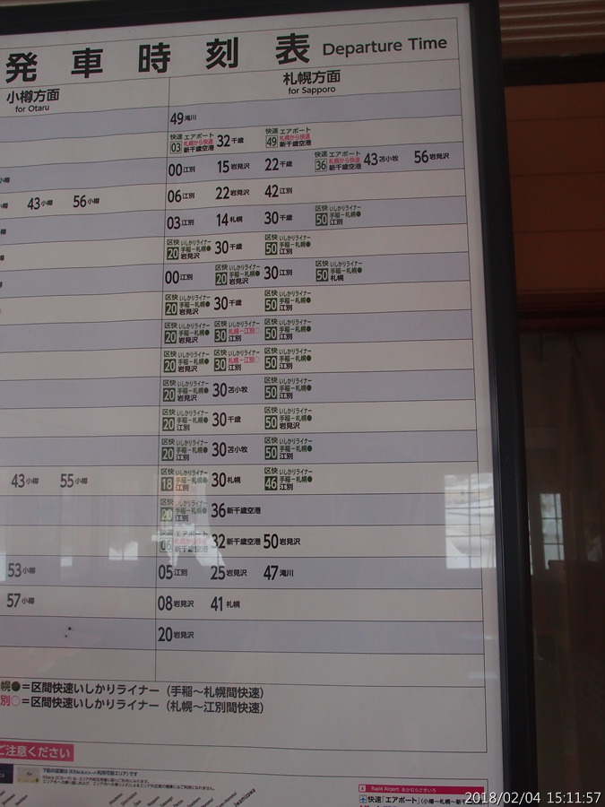구간쾌속 이시카리 라이너 정차역 알기가 참 애매하더라고요.....