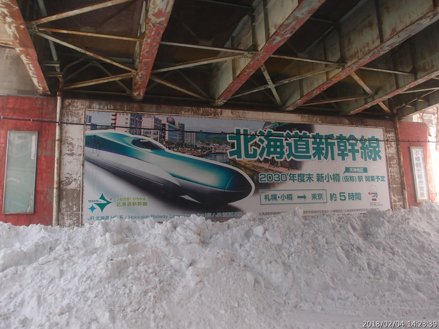 [사진 558] 오타루역에는 홋카이도신칸센 광고가 붙어 있습니다..