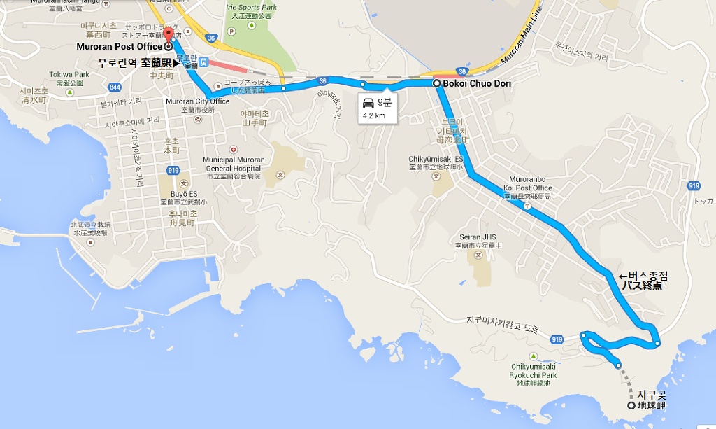 [사진 1971] 무로란에서는 노보리베츠온천이나 토야호수 방향으로도 버스가 운행되고 있는데요.