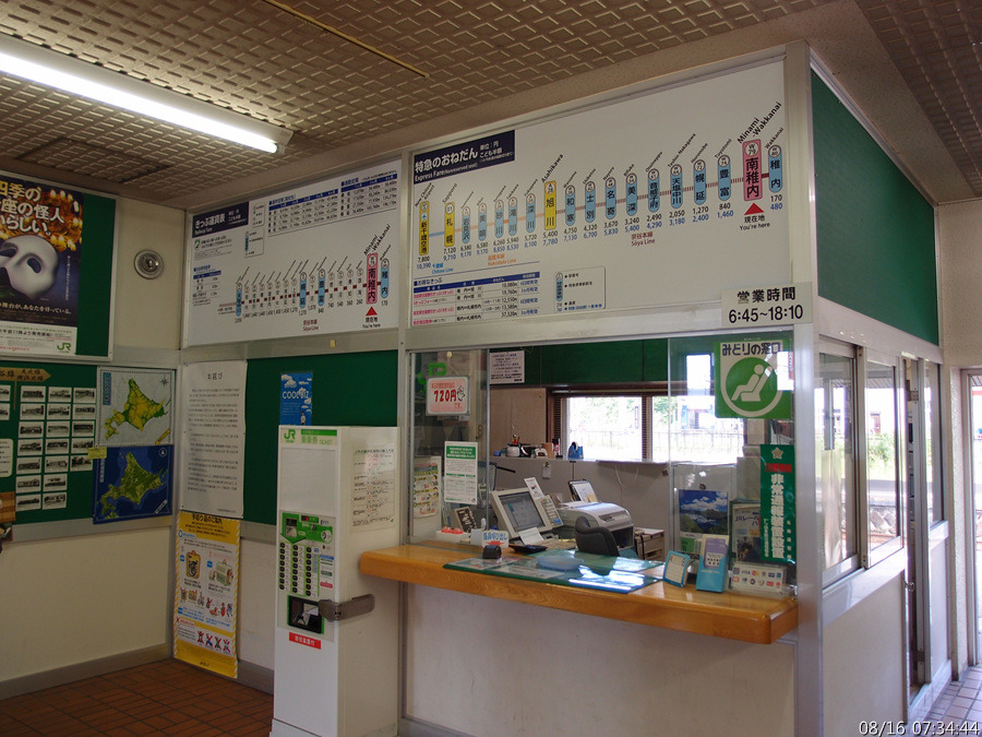 [사진 2345] 왓카나이역에 도착한 후, 정기관광버스 승차권을 구매했습니다.