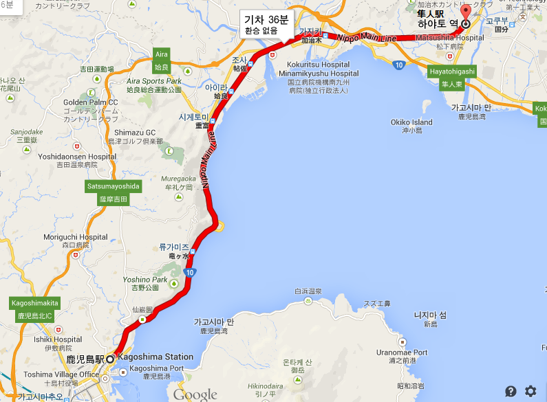이부스키 10:10 > 가고시마츄오 11:36