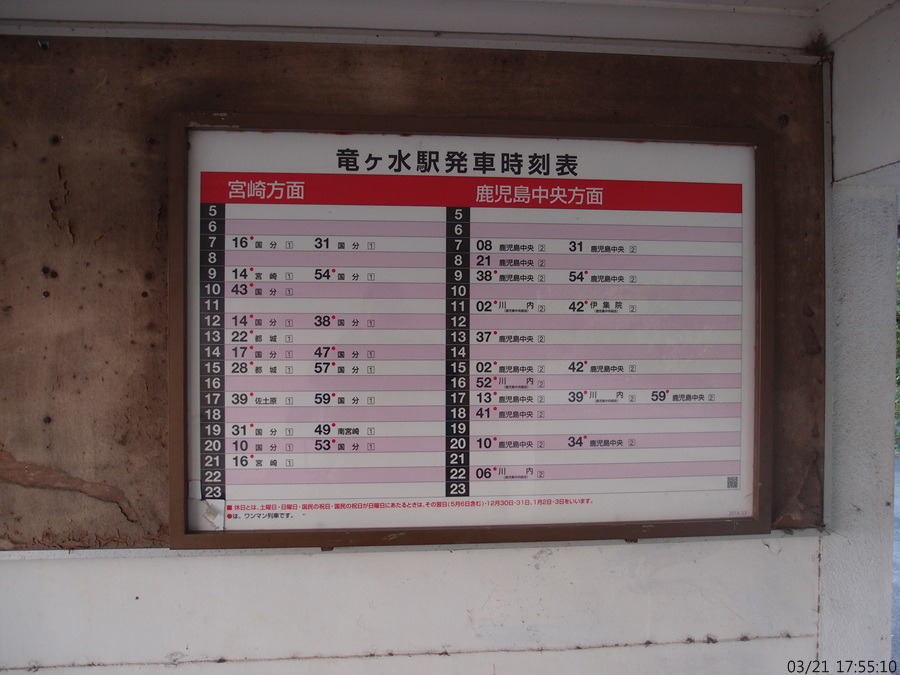 (사진 192) 류가미즈역의 시간표입니다. 제가 있던 시간대에는 2대가 연달아 서고, 2대가 연달아 통과하는 방식이더군요.