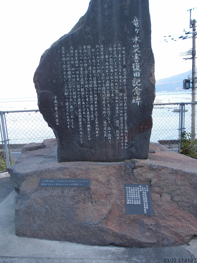 승객과 주민들을 무사히 피난시킨것을 감사하기 위해 만든 류가미즈 재해 복구 기념비라고 합니다.