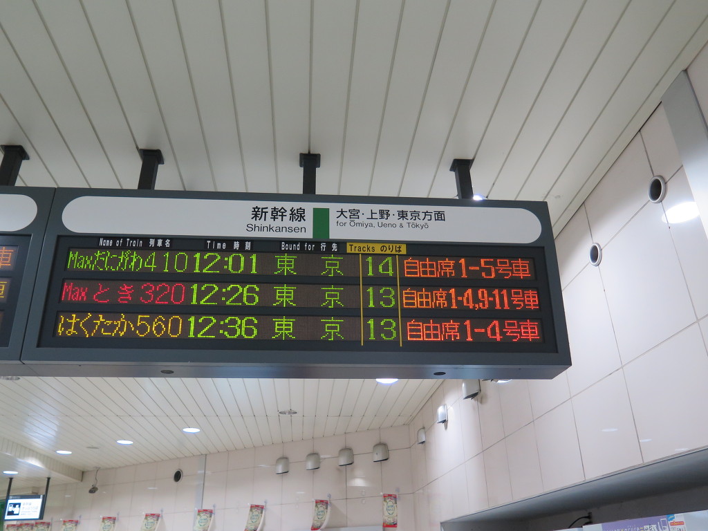 12시 1분 맥스타니가와를 타고 일단 오미야로 갑니다.