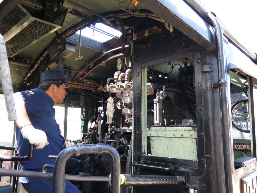 정차중에도 조금씩 연기가 나오고 쉭쉭거리는 소리도 납니다. 굴뚝에 가선주의라는 경고문도 붙어있네요.