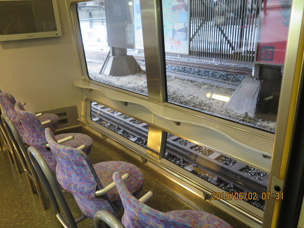 06시 55분발 교토행 각역정차로 왔습니다. 신쾌속은 일부러 보냈고, 마이바라행 쾌속열차에 사람들이 몰려서 상대적으로 사람이 적은 열차를 타고 왔습니다.