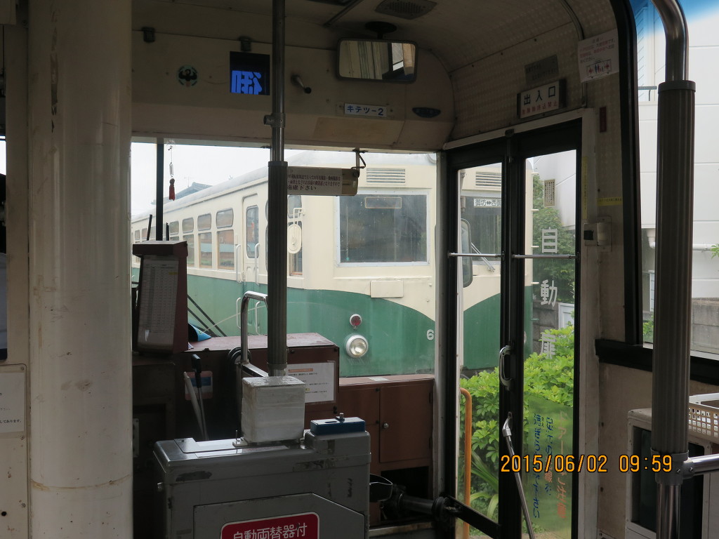 니시고보행 열차가 들어왔습니다. 일본에 남은 최후의 2축 기동차입니다. 키테츠 1형, 2형 이렇게 두 대가 있는데 오늘은 2형이 운행합니다. 일단 외관만 봤을때는 완벽한 버스입니다.