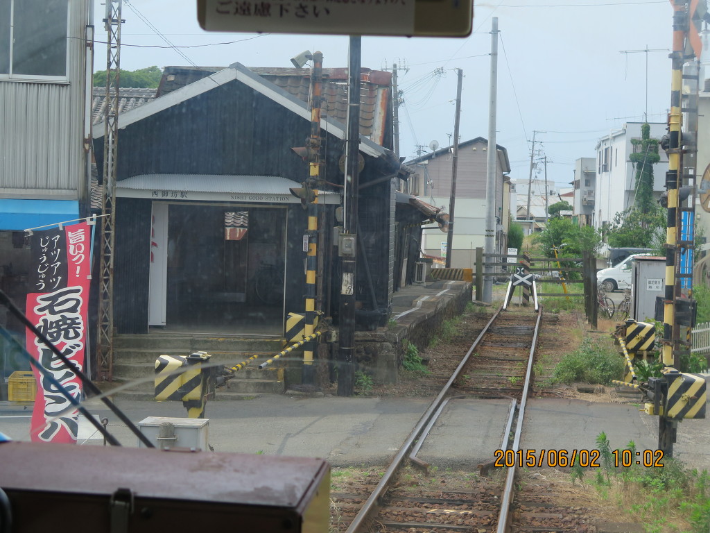 시야쿠죠마에역을 출발했는데요, 저 멀리 X자 표지가 보이는 곳이 종착역인 니시고보역입니다. 마음만 먹으면 걸어가도 되겠네요.