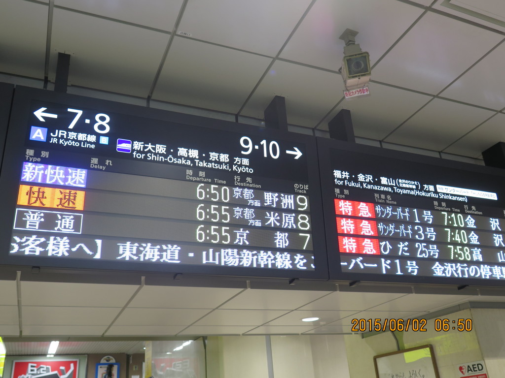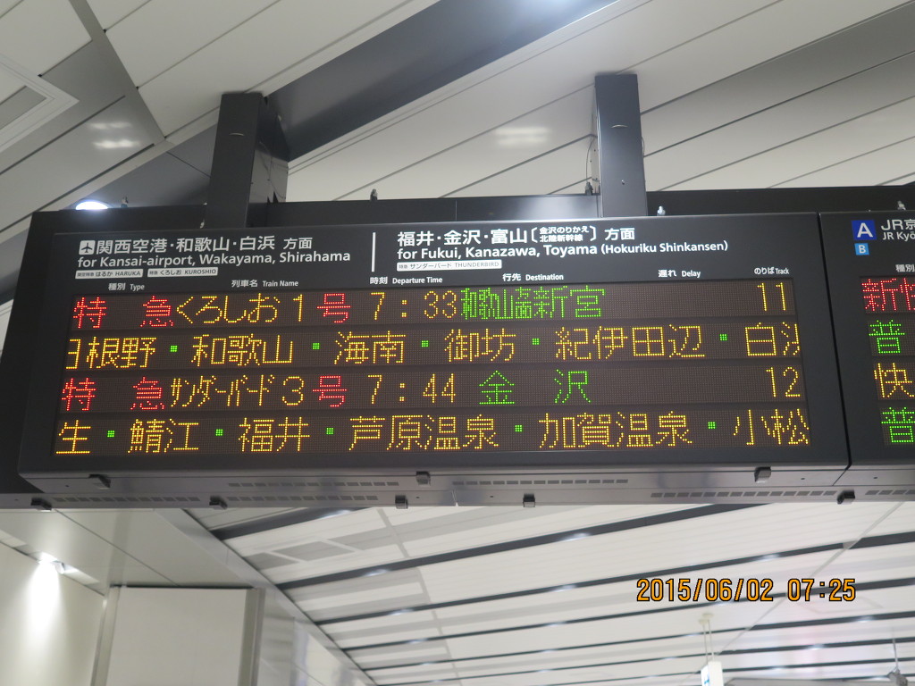 오사카역으로 들어왔습니다. 저녁에 신칸센을 타고 내려가는 것도 있고 고보까지 타고 갈 특급열차가 신오사카에서 출발하기 때문에 일단 신오사카역으로 가야 합니다. 전광판판에 뜬 열차 중 어떤 열차를 타고 갈까요?