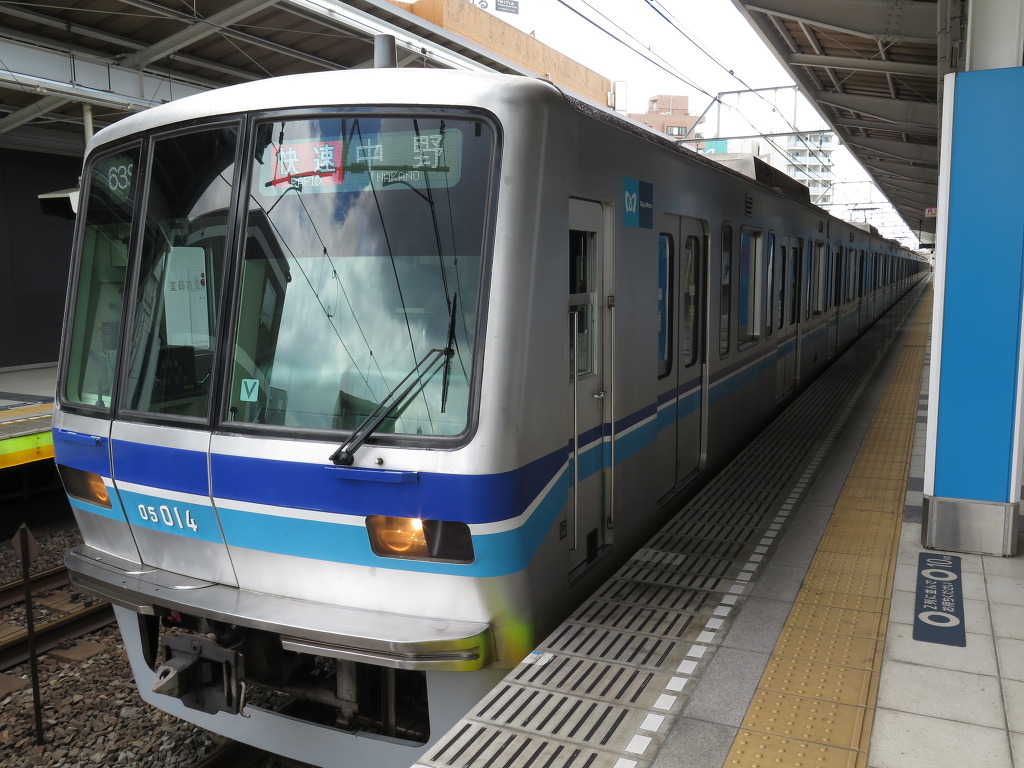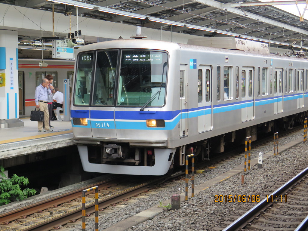 다시 니시후나바시역으로 워프해서, 도쿄메트로 도자이선 승강장으로 왔습니다. 들어오자마자 도요카츠다다이행 05계가 보이는데요, 14편성이면 도자이선 본선에서 운행하는 05계중 최고참이겠네요. 1~13편성은 개조, 수출, 폐차등으로 인해 차적에서 삭제된 상태인데요, 05계 하면 뭐니뭐니해도 13차에 걸쳐 도입하는동안 차수별로 스펙이 완전히 제각각이라는게 포인트죠.