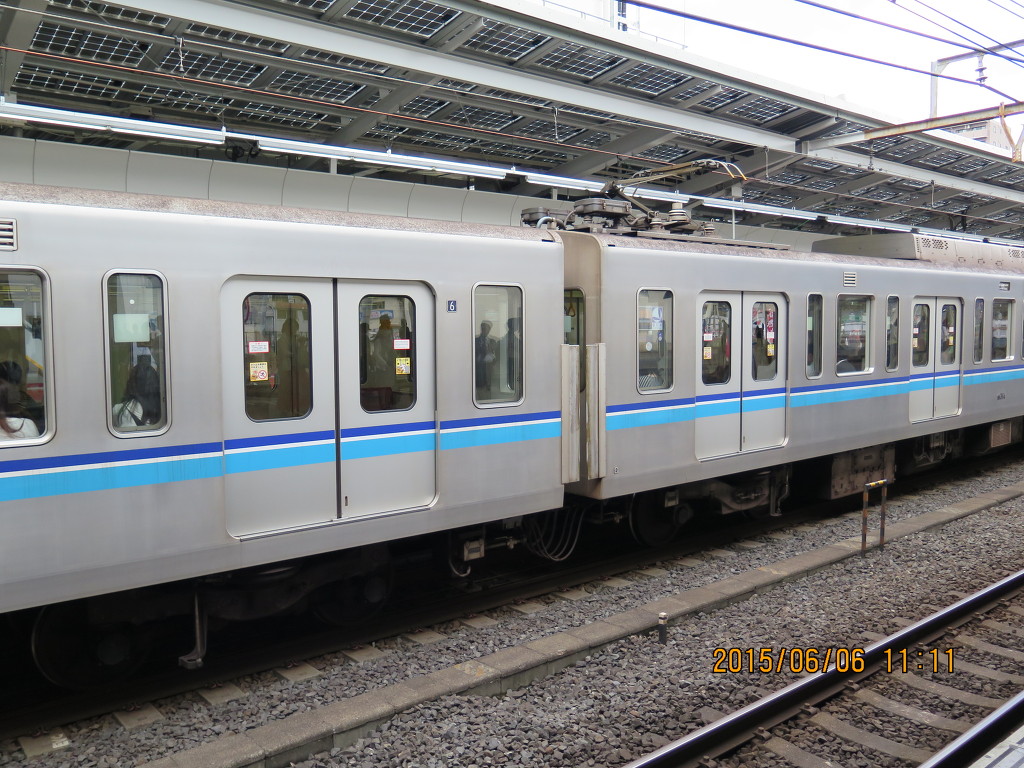 신형 15000계와 05계 24편성인데요, 오른쪽의 24편성의 경우 5000계를 폐차하고 남은 알루미늄을 수거하여 차체에 활용한 일명 ‘재활용 전동차’입니다. 그래서 저 헤드마크를 붙이고 다니는데요, 차내에도 저 스티커가 있다고 하는데 이번에 타보질 않아서 모르겠습니다. 또한 15000계의 경우 ‘05계 14차차’ 가 될뻔한 뒷이야기도 있다고 하네요.