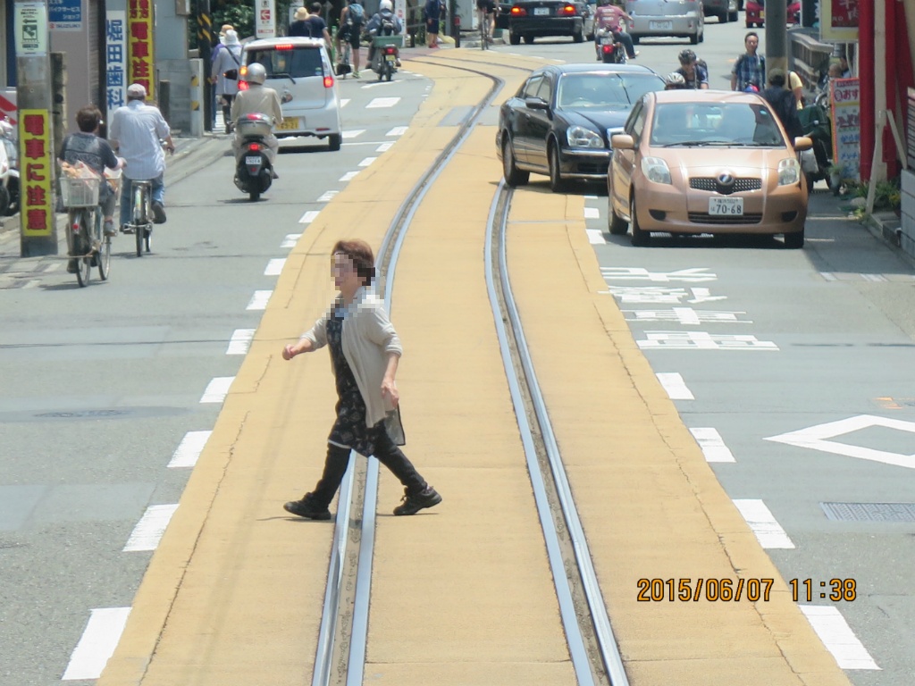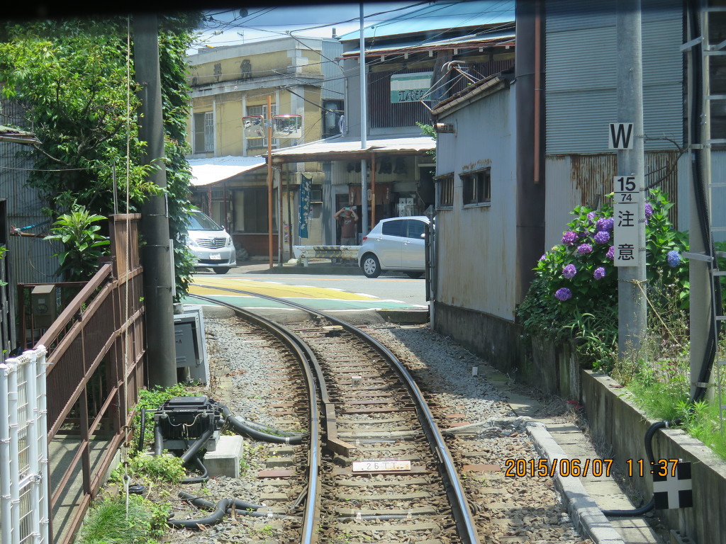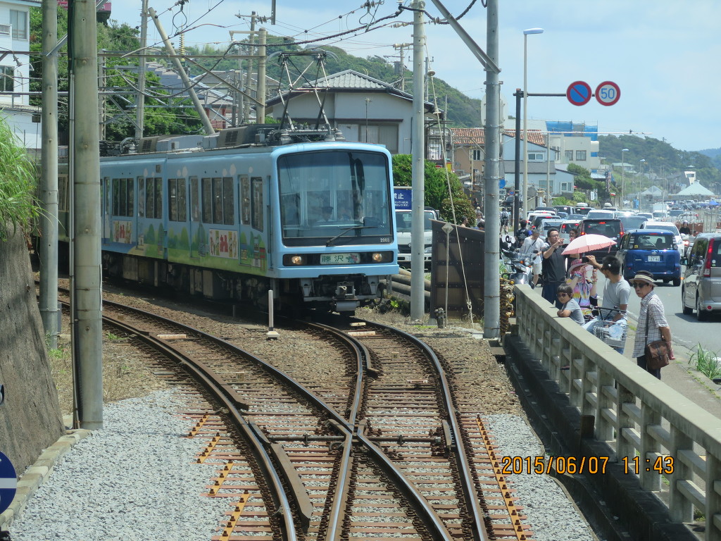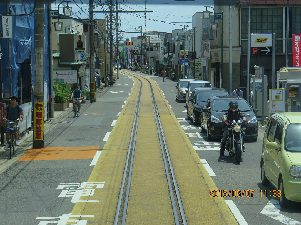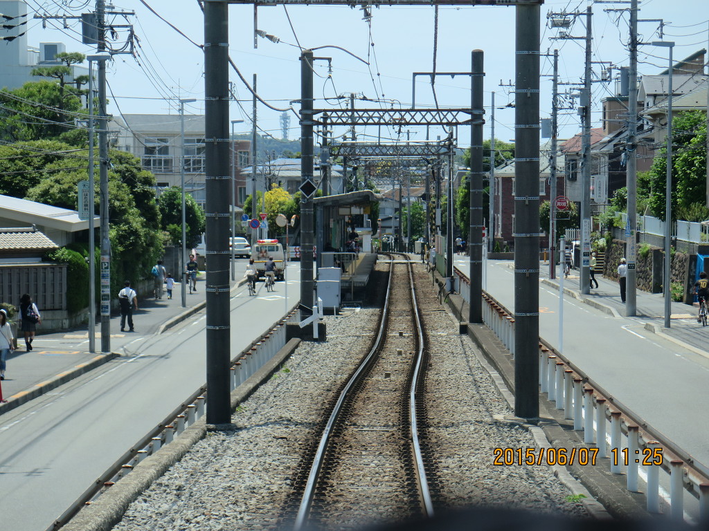 에노시마~코시고에역은 병용궤도구간입니다. 병용궤도구간에서는 15km/h 제한을 받습니다. 병용궤도가 있기는 하지만 짧은 구간인데다 고상홈을 사용하기 때문에 에노덴은 법률상으로는 철도사업법의 적용을 받는 일반철도입니다. 그런데 이 구간 때문에 노면전차로 인식되고 있는 것 같습니다.