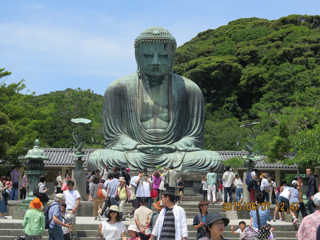 고토쿠인 안으로 들어오면 바로 대불상이 보입니다. 1252년 청동으로 제작되었고, 높이 13.4m, 무게 121t으로 일본에서 두 번째로 큰 불상이라고 합니다. 사진에 보이겠지만 오늘 토요일이라 사람이 엄청 많았습니다. 일본어, 한국어, 중국어, 영어.......온갖 언어를 다 들을수 있었습니다.