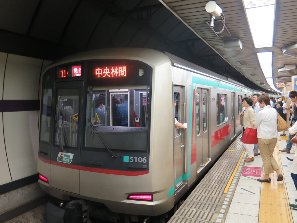 도큐 5000계입니다. 츄오린칸행 급행으로 들어왔네요. 6비차도 달고있는데, 예상은 했지만 역시 사람이 엄청 많습니다. 한조몬선이 긴자선의 혼잡도 완화를 위한 바이패스 노선인데, 하필 직결운행하는 노선이 '지옥의 덴엔토시선'이라 결국 양쪽 다 신나게 터져나가고 있죠.