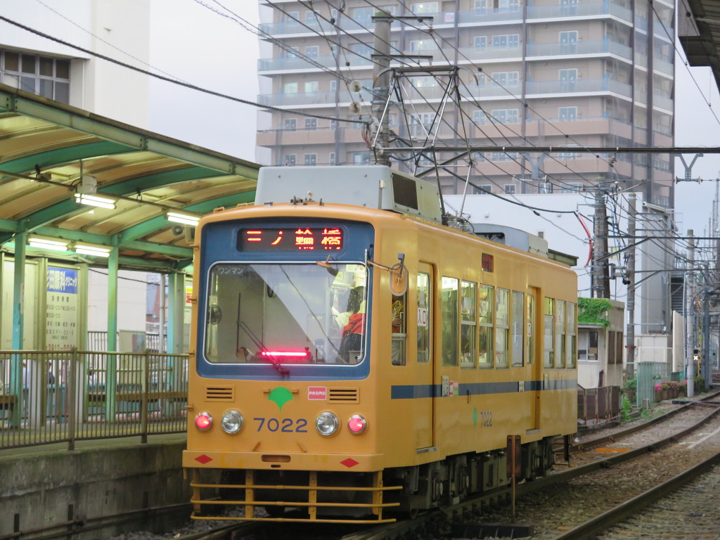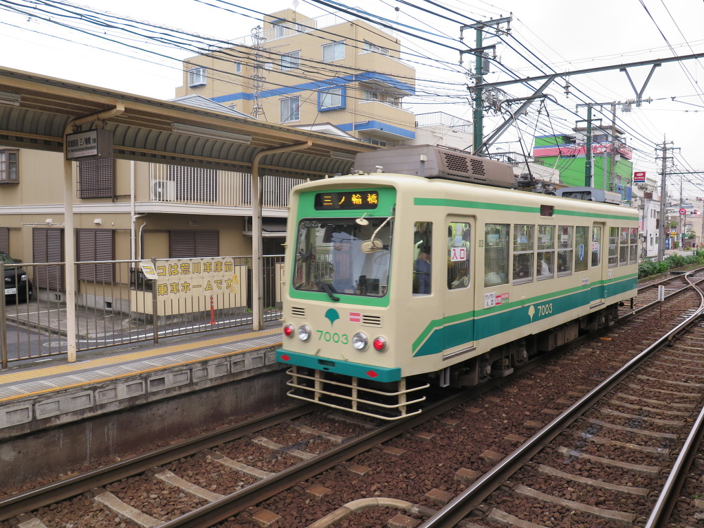 미노와바시행 7000형 한대를 찍어봤는데, 아까 아라카와샤코 앞에 있던 구형전차와 도색이 같습니다. 일부러 구도색을 칠해놓은 걸까요?