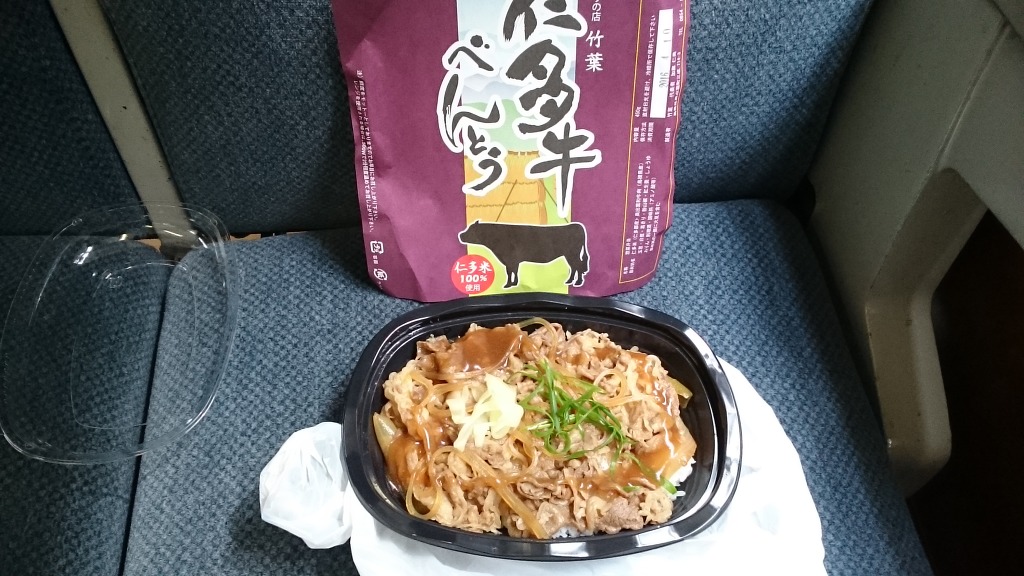 닛타규 벤또는 아저씨 아주머니가 승차해서 좌판 내려놓고 "자아~! 이 도시락으로 말할 것 같으면"의 자아 소리 꺼내시기도 전에 닛타규벤또 하나요! 하고 사러가서 본의아니게 좀 놀라게 해드렸습니다[...] 아마 역대 최고속의 첫 구매자가 아니었을지..^^;