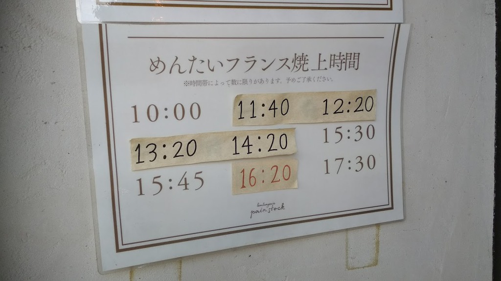 제일 인기라는 멘타이코 프랑스빵 나오는 시간 안내.