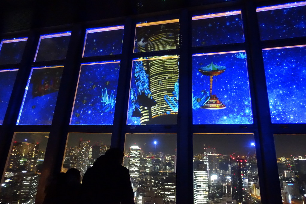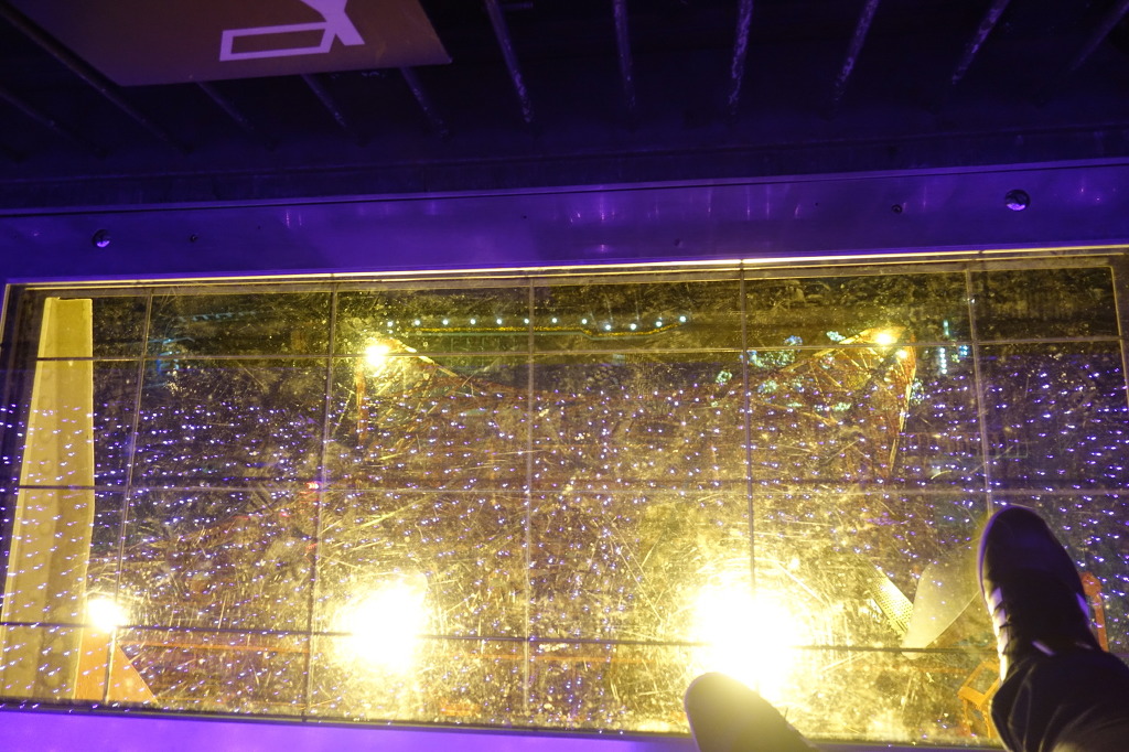 <사진 0166 : 윗쪽 창문부분엔 이렇게 마치 화면에서 직접 재생하는듯한 영상이 나온답니다. (같은 유리입니다. 빔프로젝터같은거로 쏘는듯 싶네요.)>