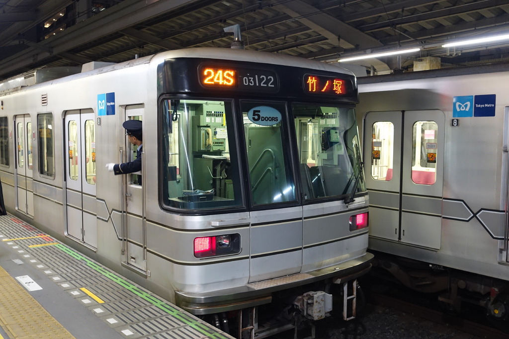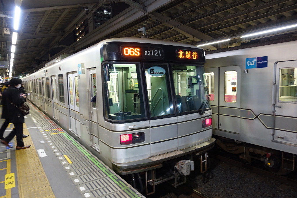 히비야선의 03계는 특이하게 일부 칸에 4도어도 6도어도 아닌 5도어를 갖고있습니다.