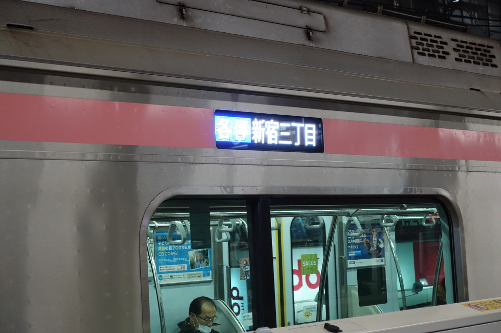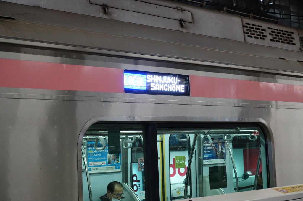 <사진 0150 / 0151 : 바로 신주쿠산쵸메행 보통열차입니다. 후쿠토신선에 이런 행선지가 있는지는 몰랐네요.>