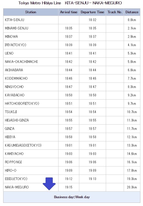 이름 및 열번 - 히비야선 보통열차 키타센쥬행 (B2037T)