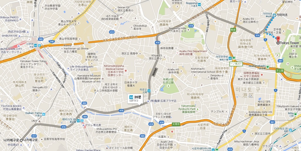 사실 도쿄타워는 어느 역에서든 약간 어정쩡한 위치에 있었는데요.