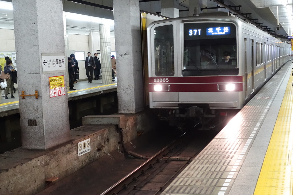 나카메구로역 (19:27) -> 에비스역 (19:29) - 도쿄메트로 히비야선 보통 (B1924S) [1km]