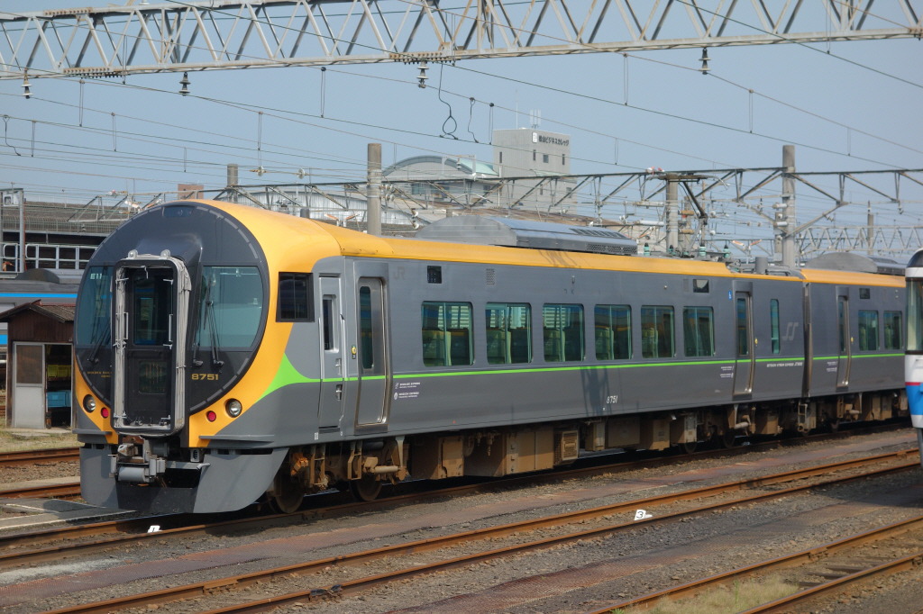 JR요산선은 다카마츠~마츠야마~우와지마를 잇는 시코쿠의 최장거리 노선으로, 세토나이카이와 우와카이 연안을 달린다. 국철 시대에는 요산본선으로 불렸으나, 민영화 후 JR시코쿠가 1988년에 요산선으로 이름을 바꾸었다. 카가와현의 서부와 에히메현을 종단하는 노선으로, 특히 다카마츠~마츠야마 구간은 국철 시대부터 시코쿠의 주요 간선의 위치를 차지하였다. 또한 빠르게 전철화되었으며 중궤조화 및 1선스루화, 탄성분기기 등이 설치되어 고속화 공사가 완료되어, 현재는 최고속도 130km/h까지 낼 수 있게 되었으며 일부 단선 구간이 있음에도 불구하고 표정속도는 일본 최고레벨에 올라 있다.
