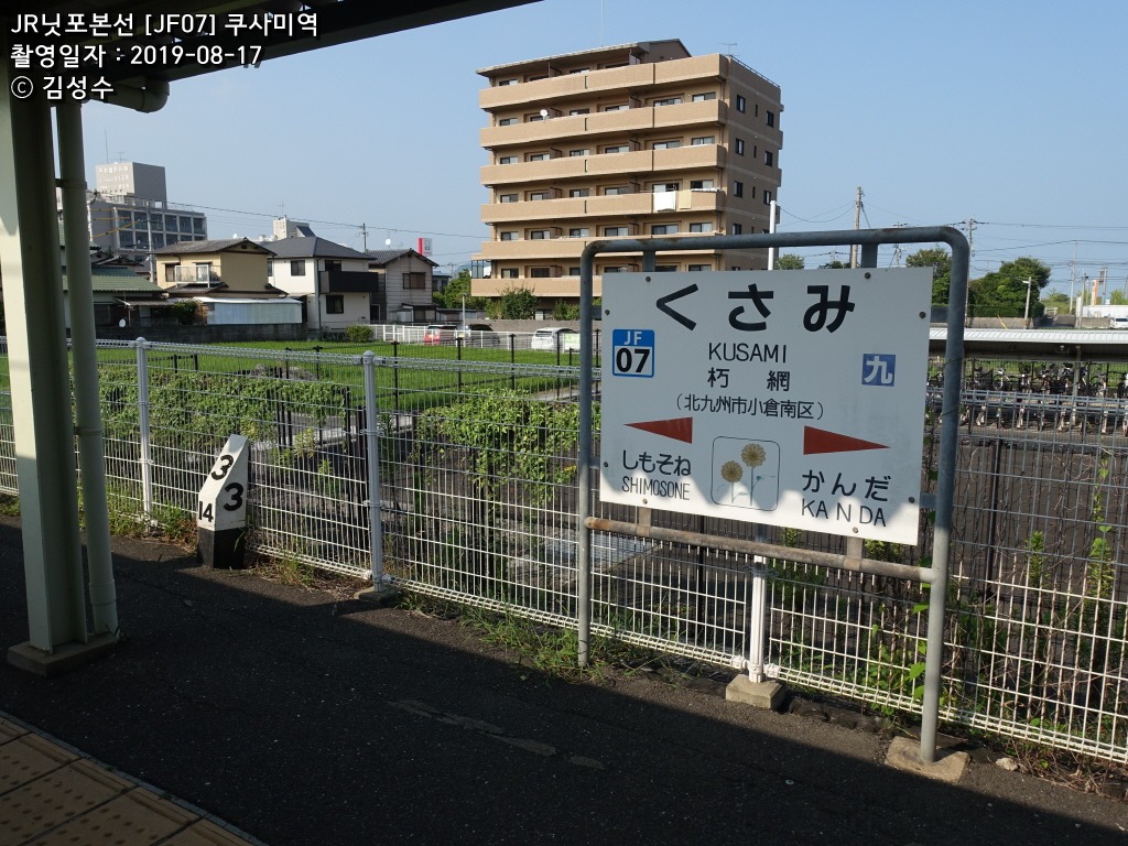 15.0km | JF07 | 쿠사미 | 朽網 | | | | | ↑ | 60 | 업무위탁역 | 2면 2선 | 1||2 | 1952/06/01 | 2,286 | |