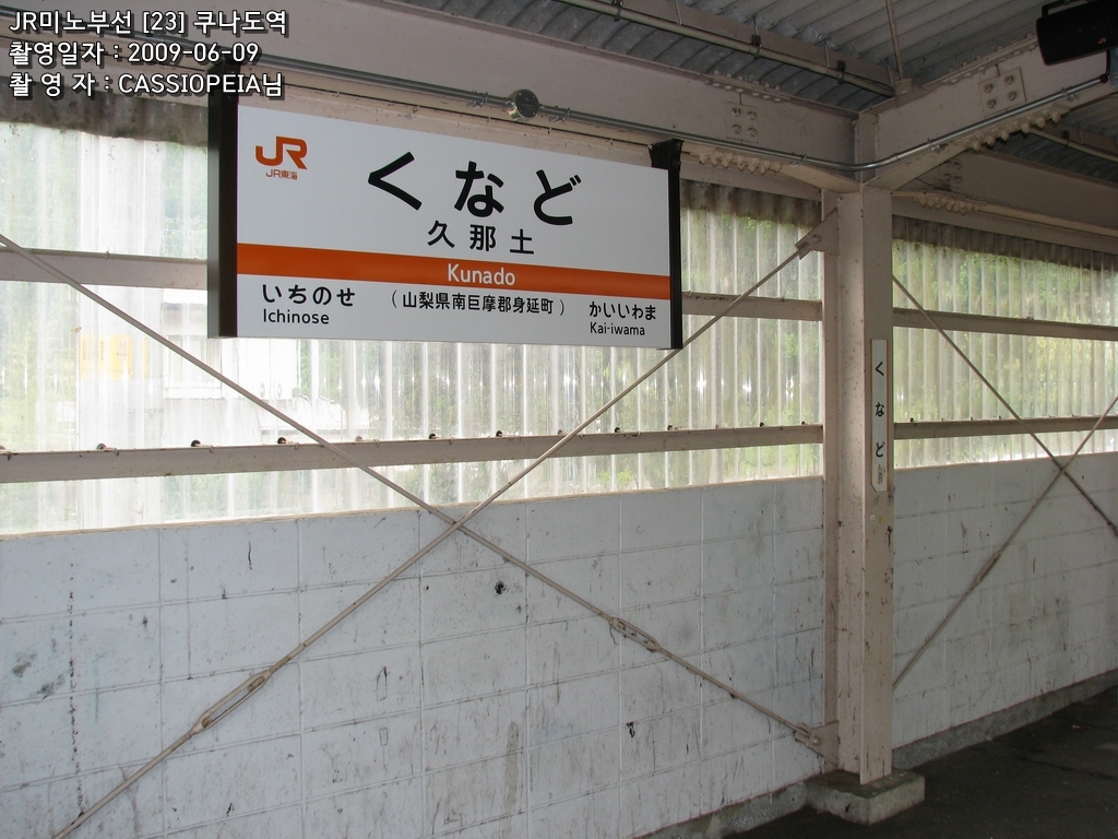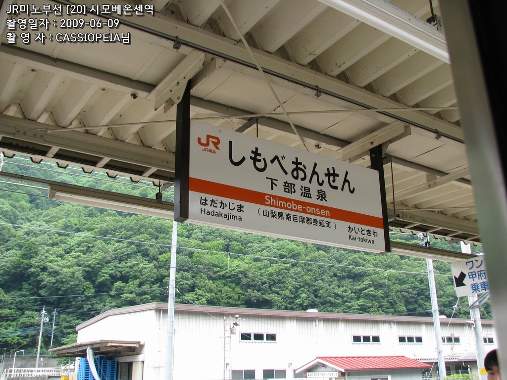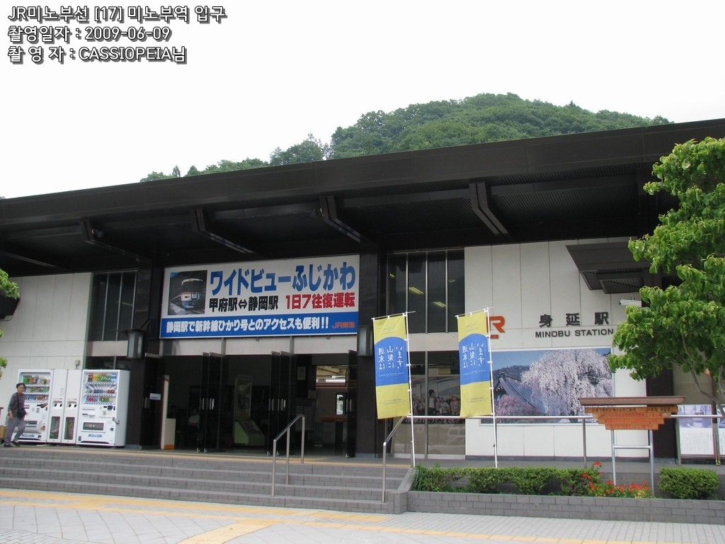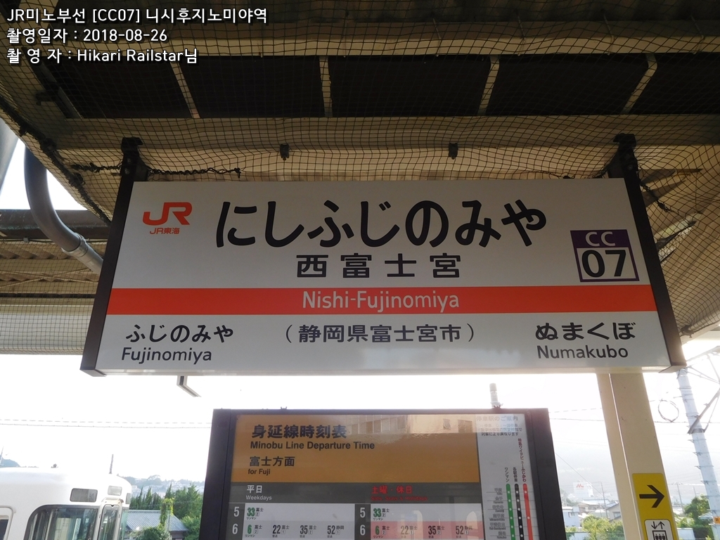 JR미노부선은 후지를 출발해 후지산 서쪽 기슭을 따라 미노부를 경유하여 야마나시현의 고후에 이르는 지방노선으로, 후지카와 강변을 달리는 산악노선이다. 전 노선이 후지카와의 좌측 강안(동측)을 주행하며, 후지카와 본류를 건너는 일이 없다. 나고야 지역에서 야마나시현 방면으로 가는 최단거리의 철도 루트이기 때문에, 시즈오카에서 도카이도신칸센에 접속하는 특급 <후지카와>가 운행하여 장거리수송도 겸하고 있지만 사실은 전철화된 로컬노선이다.