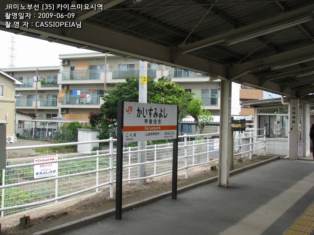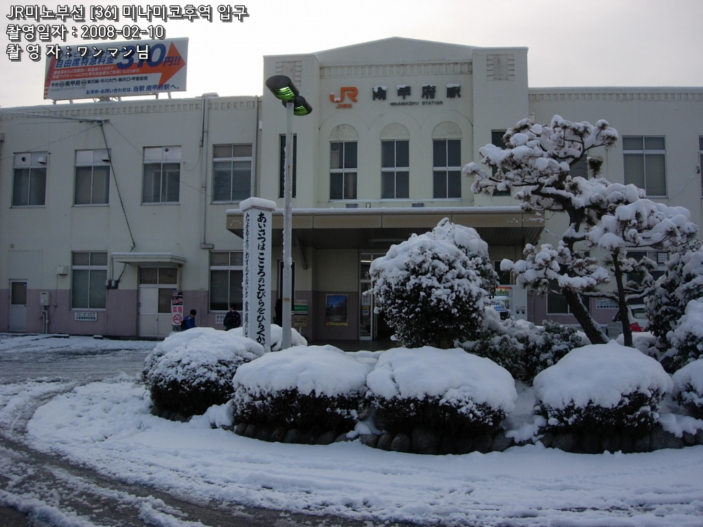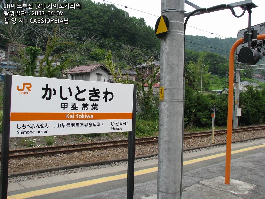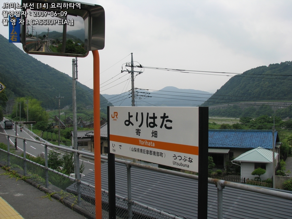 JR미노부선은 후지를 출발해 후지산 서쪽 기슭을 따라 미노부를 경유하여 야마나시현의 고후에 이르는 지방노선으로, 후지카와 강변을 달리는 산악노선이다. 전 노선이 후지카와의 좌측 강안(동측)을 주행하며, 후지카와 본류를 건너는 일이 없다. 나고야 지역에서 야마나시현 방면으로 가는 최단거리의 철도 루트이기 때문에, 시즈오카에서 도카이도신칸센에 접속하는 특급 <후지카와>가 운행하여 장거리수송도 겸하고 있지만 사실은 전철화된 로컬노선이다.