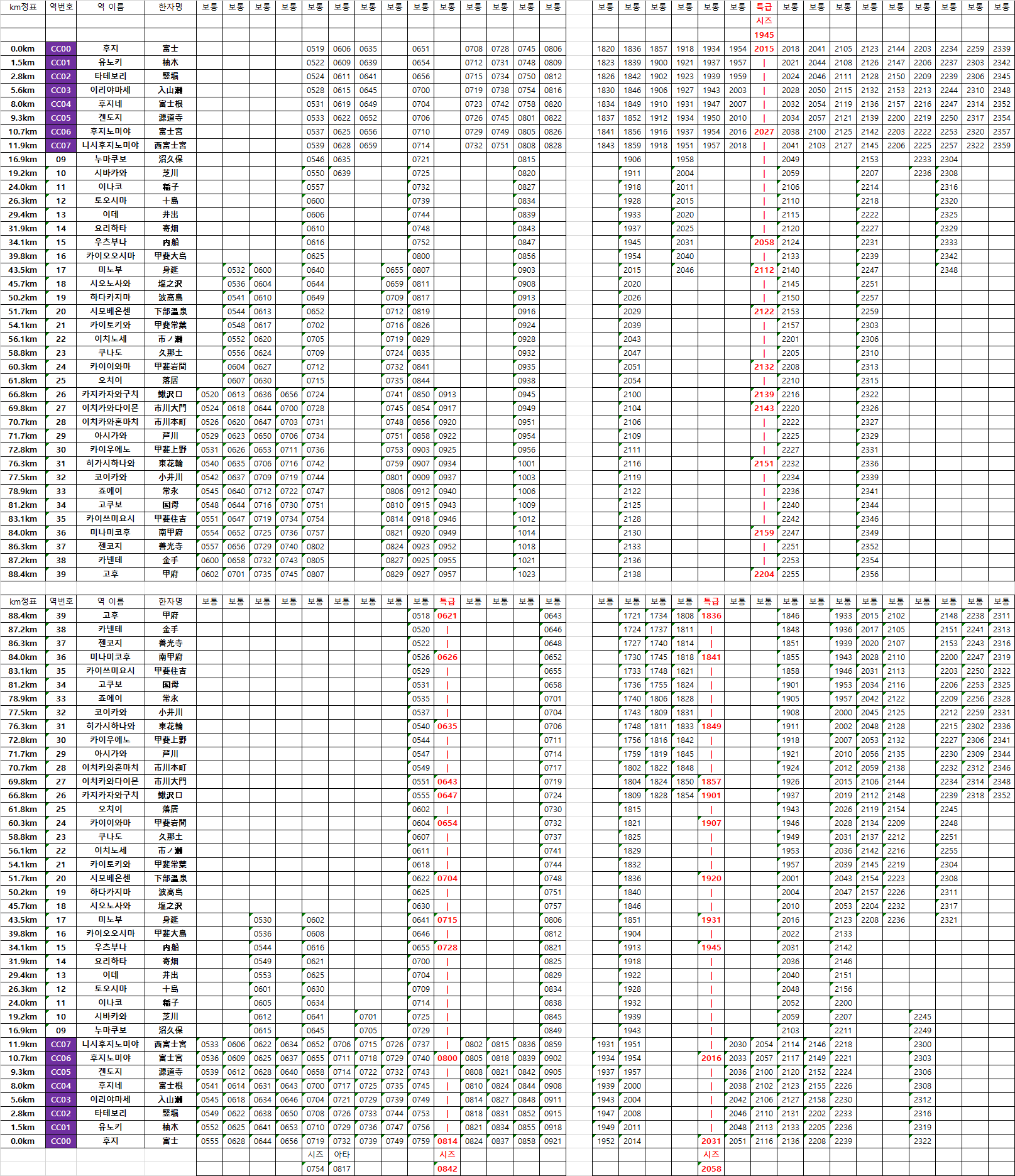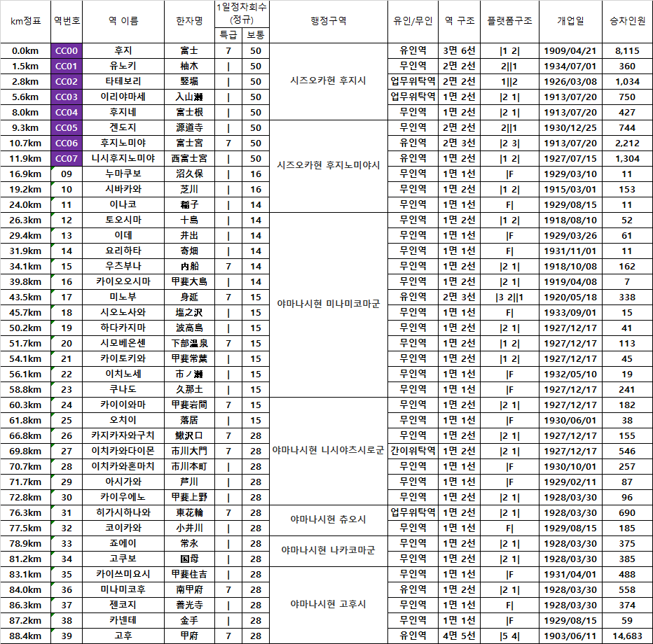 단선/복선구분 : 후지~후지노미야 구간 복선, 나머지 구간 단선