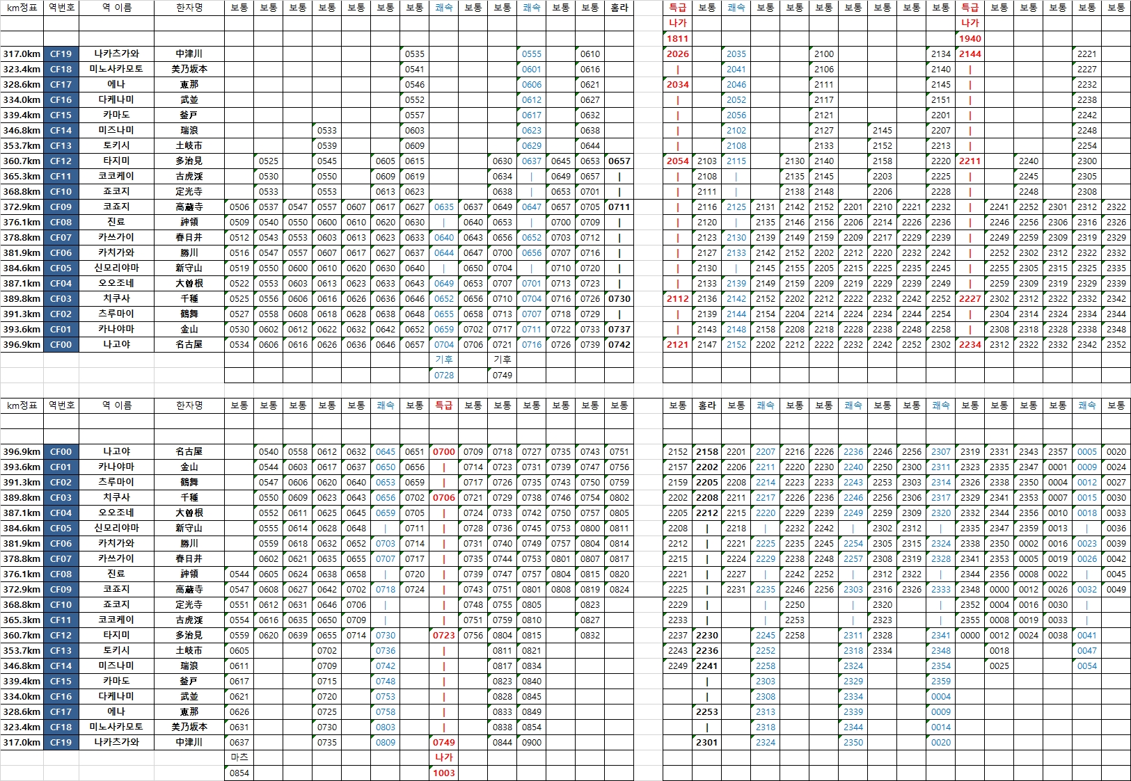 나카츠가와 방면(나고야~나카츠가와)