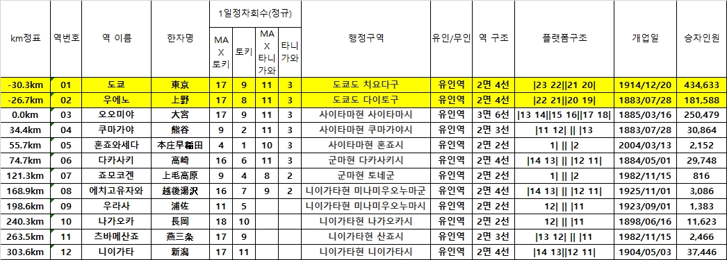 역수 : 10개 역(오오미야~니이가타)