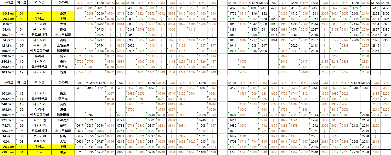 하행(도쿄 -> 니이가타)