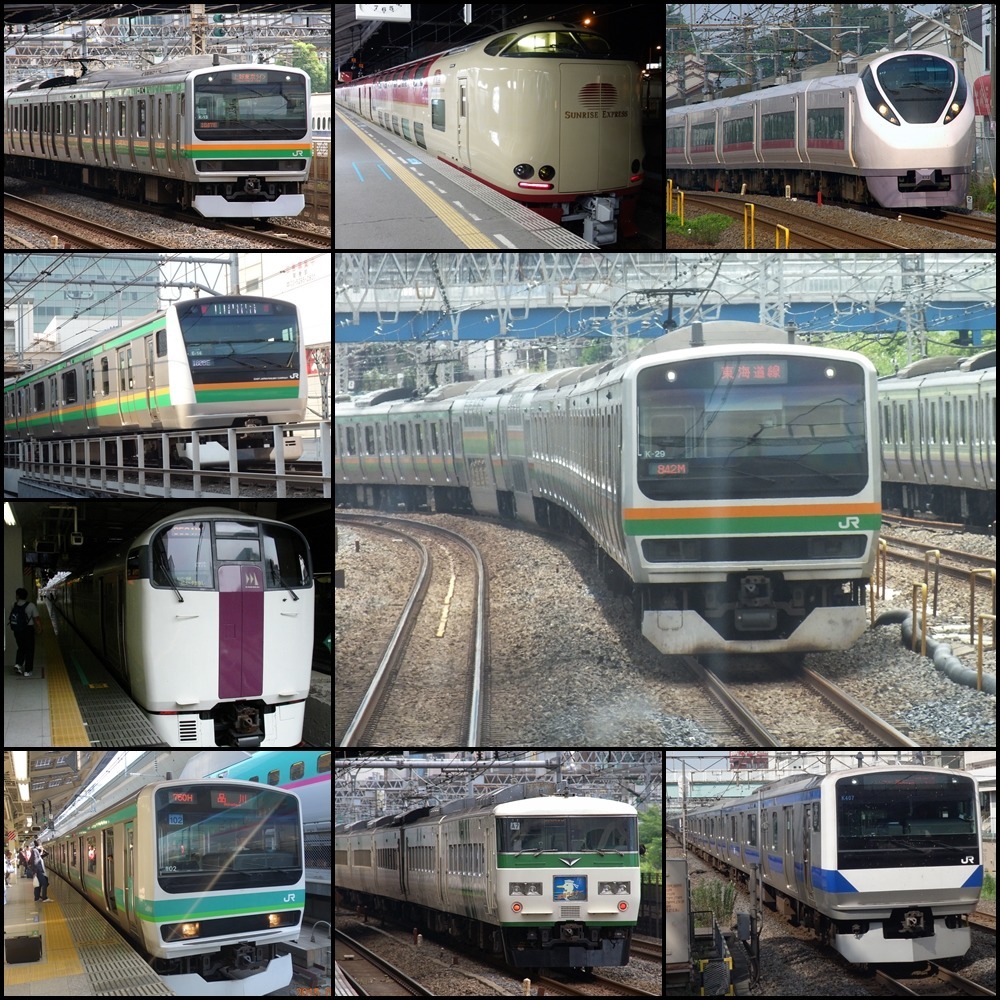 E231계 근교형 전동차 K편성 - 10량편성, JR동일본 고즈차량센터 소속. 보통/쾌속/통근쾌속/특별쾌속으로 운용.