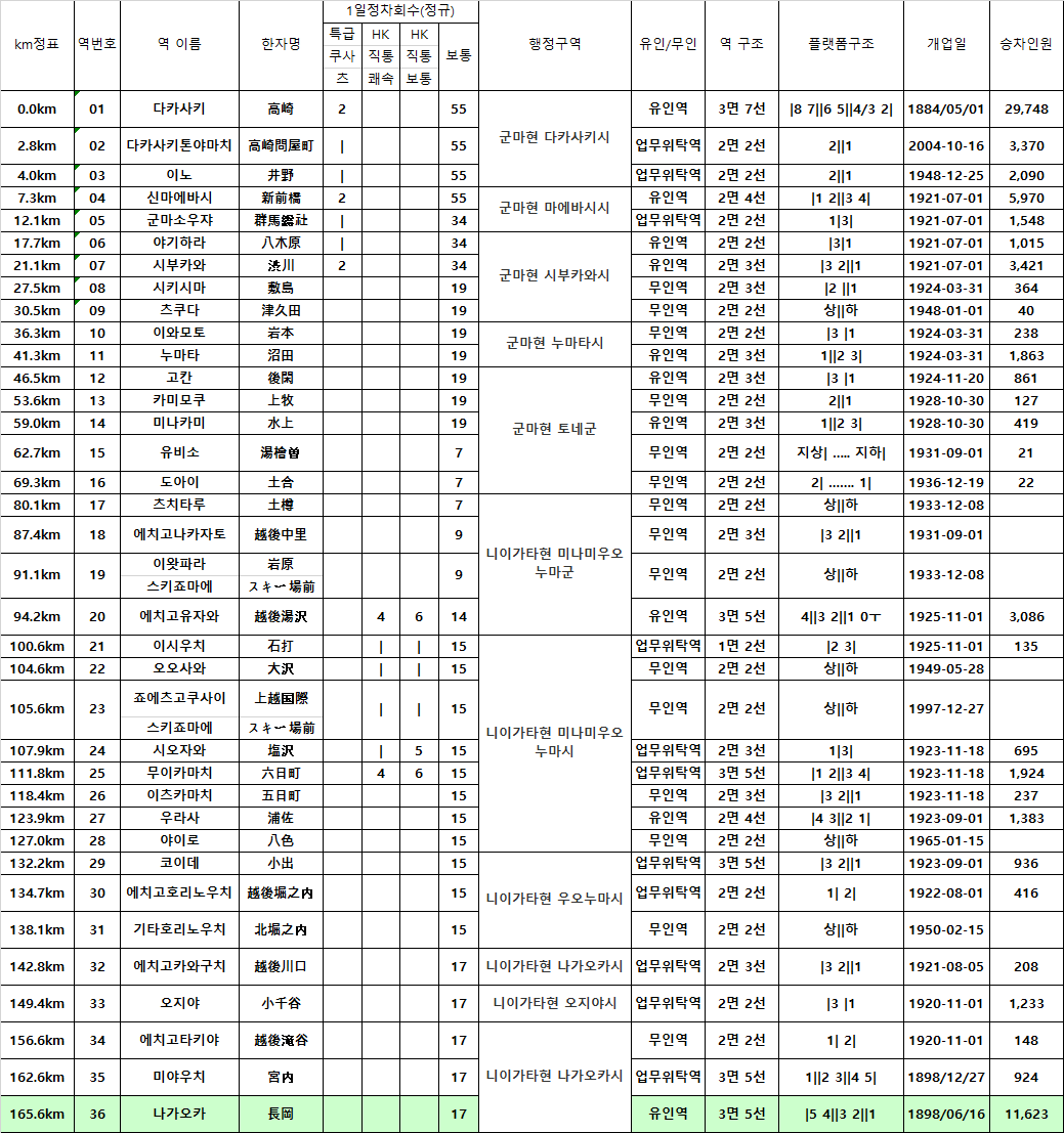 역수 : 35개 역(다카사키~미야우치)
