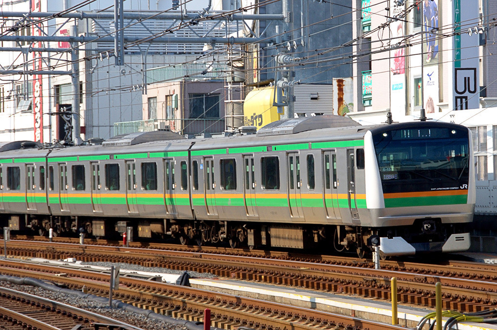 E233계 3000번대(U200편성) - 5량편성(부속편성). JR동일본 오야마차량센터 소속. 신마에바시~마에바시 구간 운용.