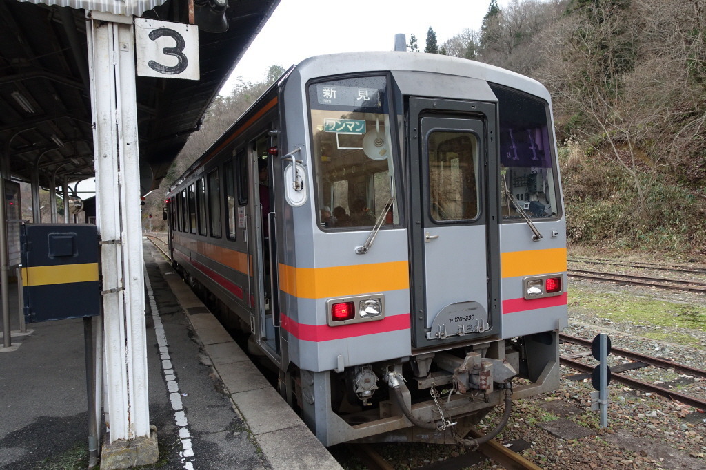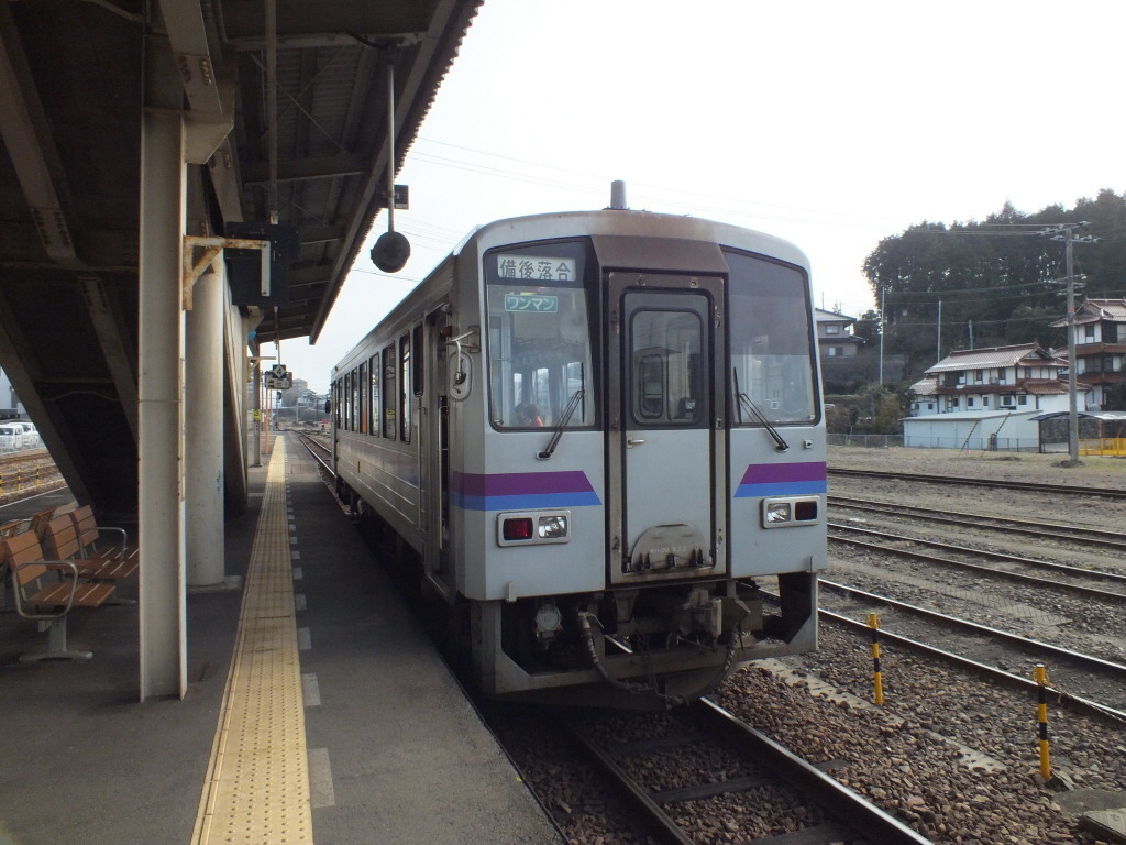 키하120형 - 1량편성. 니이미~빙고오치아이 구간 운용. JR서일본 오카야마기동차구 소속.