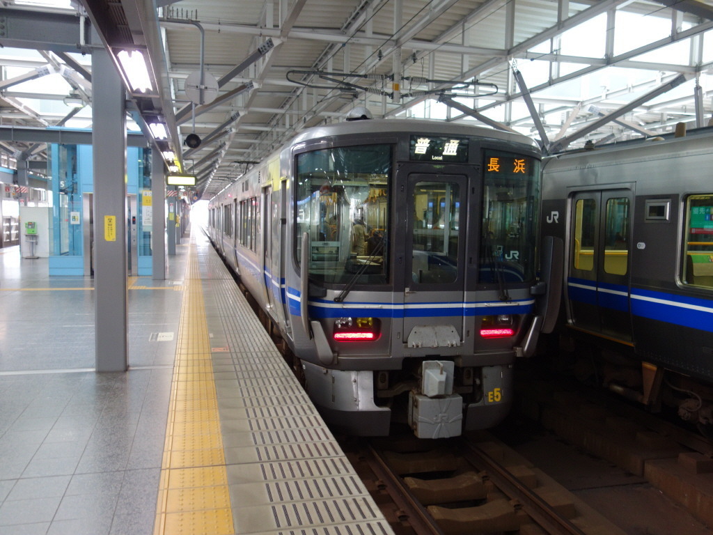 보통 - 운행 구간 내에서는 각역에 정차한다. 낮시간대 기준으로 교토~오우미마이코 구간은 시간당 3편, 오우미마이코~오우미시오츠 구간은 시간당 1편 운전된다. 출퇴근시간에는 교토~카타타 구간의 구간열차가 추가된다. 오우미이마즈~오우미시오츠 구간의 일부 보통열차는 츠루가/후쿠이/마이바라 방면으로 직통하는 열차도 있다. 신쾌속이 운전되지 않는 저녁시간대 이후에는 오우미이마즈~오우미시오츠 구간의 보통열차가 시간당 1~2편 정도 운전된다. 예전에는 4문 타입 롱시트의 보통열차(도카이도본선 직통 완행열차)가 직통운전을 하던 적도 있었으나 2016년 3월 시각표 개정으로 폐지되었다.