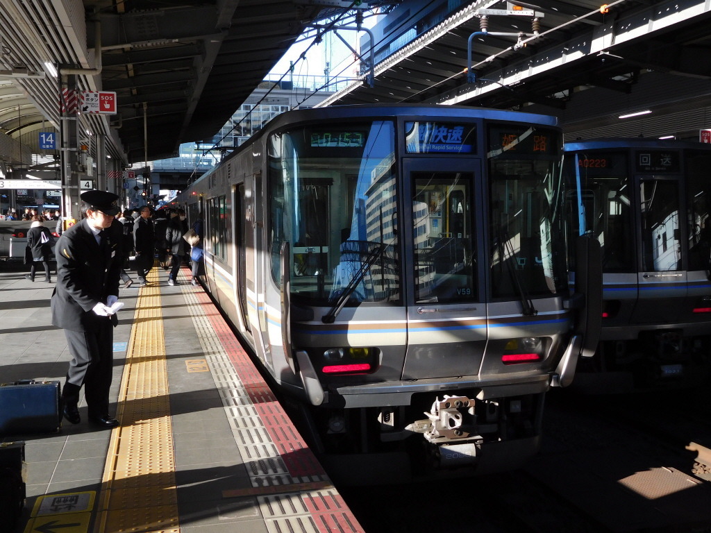 223계 1000/2000번대(V편성) - 4량편성. <신쾌속>/<쾌속>으로 운용. JR서일본 아보시종합차량소 소속.