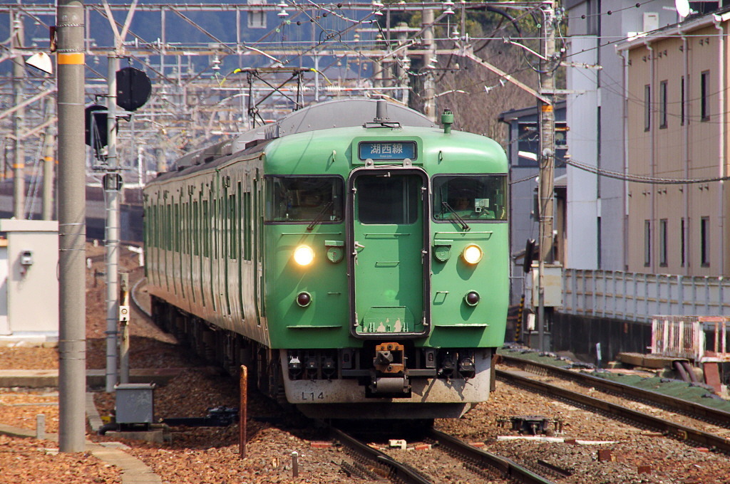 113계(L/C편성) - 4량편성. 보통열차로 운용. JR서일본 스이타종합차량소 교토지소 소속.