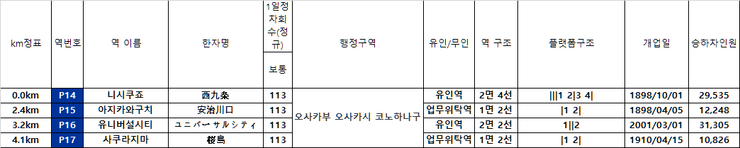 역수 : 4개 역(니시쿠죠~사쿠라지마)