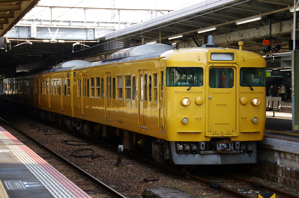 115계(R편성) - 4량편성. 카미고리~이토자키 구간 보통열차로 운용. 시모노세키종합차량소 소속.